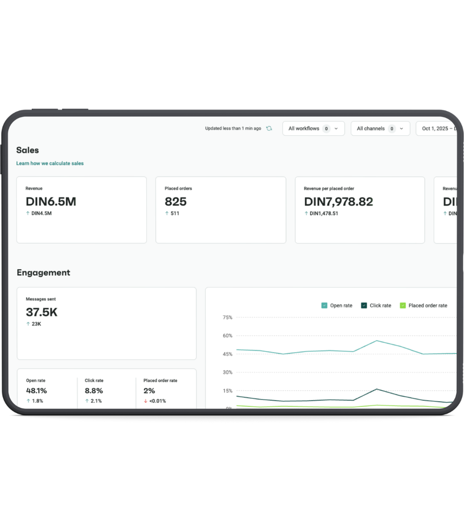 Poseban fokus stavljamo na unapređenje retentiona, odnosno angažovanje postojećih kupaca, što je najčešće i do 4x jeftinije od akvizicije novih. Analiziramo ključne metrike i pratimo mesečne trendove kao što su: Retention Rate, Returning Customers Orders MoM, Purchase Frequency, LTV i Average Time to Second Purchase.